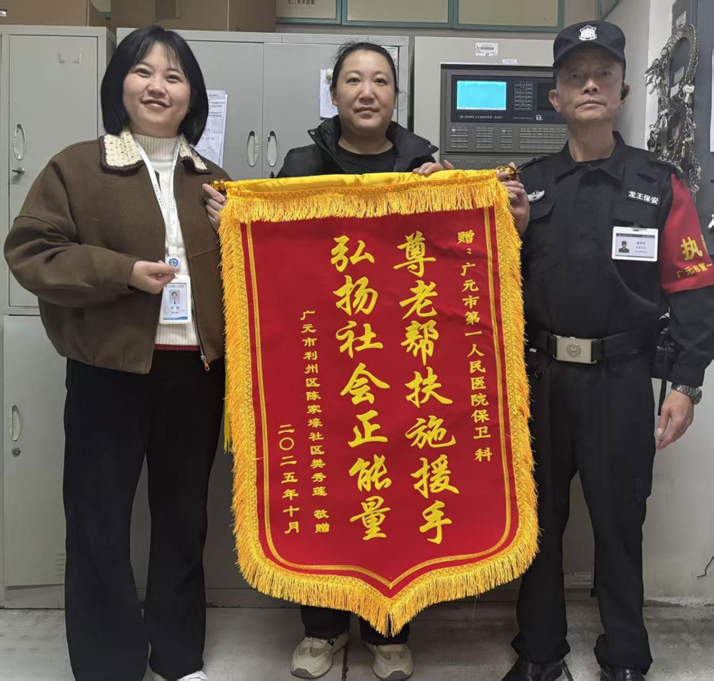 10月26日,樊秀莲带着一面写有“履职尽责显担当 热心助老暖人心”的锦旗,专程来到广元市第一人民医院保卫科,向赵学东、左琼、黄兵等安保人员表达谢意。“事发时全家都在到处找老人,得知老人被你们安全照顾着,心里特别踏实。不仅帮我们找回了老人,还想得这么周到,这份责任心太让人感动了!”樊秀莲说,这次经历让她真切感受到基层安保人员的温暖担当,也希望这份正能量能被更多人看见。广元市第一人民医院保卫科负责人对四川龙王保安服务有限公司的安保团队给予高度评价:“他们始终把‘服务群众’放在心上,这次救助事件不仅体现了专业的应急处置能力,更展现了满满的人文关怀,为医院营造安全、温暖的就医环境提供了很大帮助。”